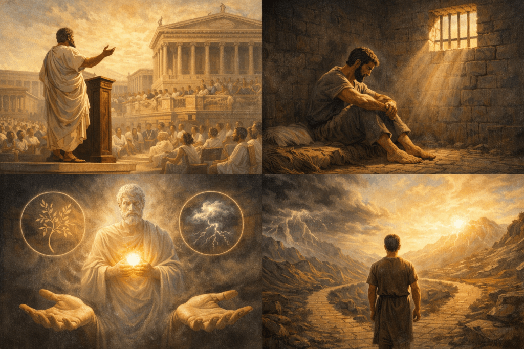 La tribuna y la cárcel son dos lugares distintos; el uno, elevado; el otro, humilde; pero el albedrío es igual. Si quieres conservarlo igual en cada uno de esos lugares, puede ser conservado.