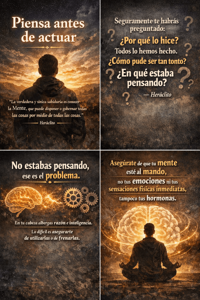 No estabas pensando, ese es el problema. En tu cabeza albergas razón e inteligencia. Lo difícil es asegurarte de utilizarlas o de frenarlas.